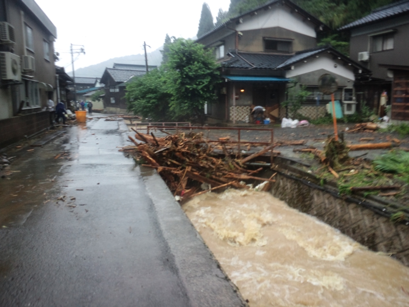 今立地区の川が氾濫して床上浸水など被害が出ています。