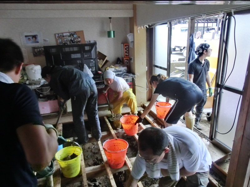 気になる家に個人的に聞き込みに入るとボランティア5名欲しいと・・・センターに言うともうボランティアがいないので行けない・・・しばらくして仲間が2名駆けつけたのでそちらに行ってもらった。作業が時間内に終わらない家だったので手が空いた仲間を集めて最終10数名を動員。1時間ほど時間オーバーでしたが、最後は人海戦術のチームプレーで無事作業完了でした。